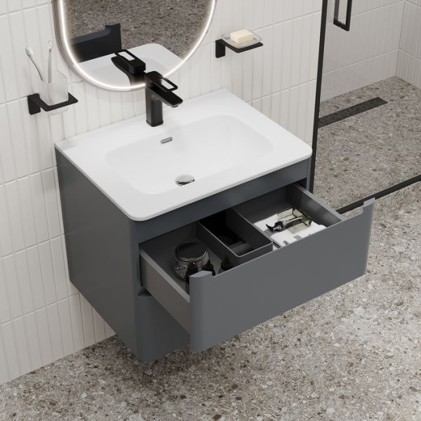 Подвесная тумба с раковиной IDDIS Edifice EDI60D0i95K 60см тёмно-серый