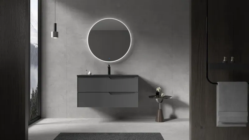 Подвесная тумба с раковиной Parly Spa Rhea80 чёрный матовый