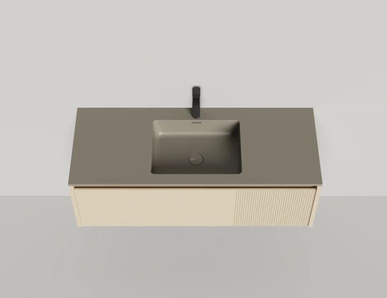 • Тумба и столешница из материала S-Stone в сборе (накладные раковины укомплектованы донным клапаном и поставляются в отдельной коробке)