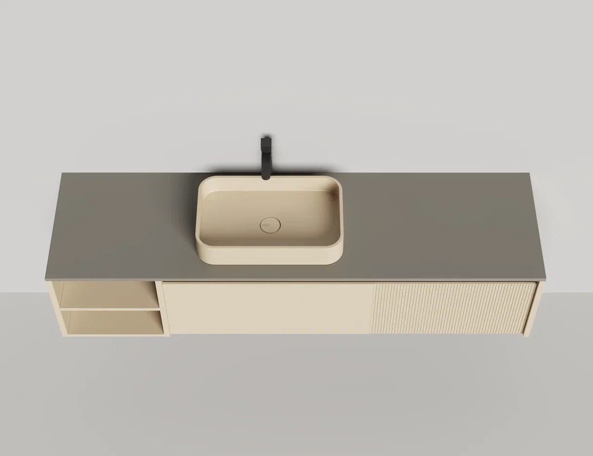 Наполнение для тумбы включает: блоки ячеек для тумб, коврики и комплект внутренней подсветки, которые помогут организовать пространство и создать более удобный доступ к вещам.Тумба DOMINO, дополненная столешницей COSTA из каменного литья S-Stone, гарантирует практичность и простоту ухода.