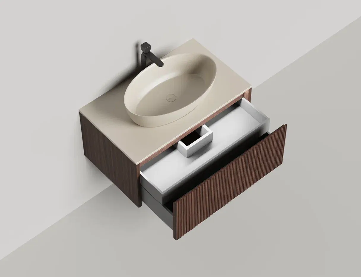 Наполнение для тумбы включает: блоки ячеек для тумб, коврики и комплект внутренней подсветки, которые помогут организовать пространство и создать более удобный доступ к вещам.Тумба DOMINO, дополненная столешницей COSTA из каменного литья S-Stone, гарантирует практичность и простоту ухода.