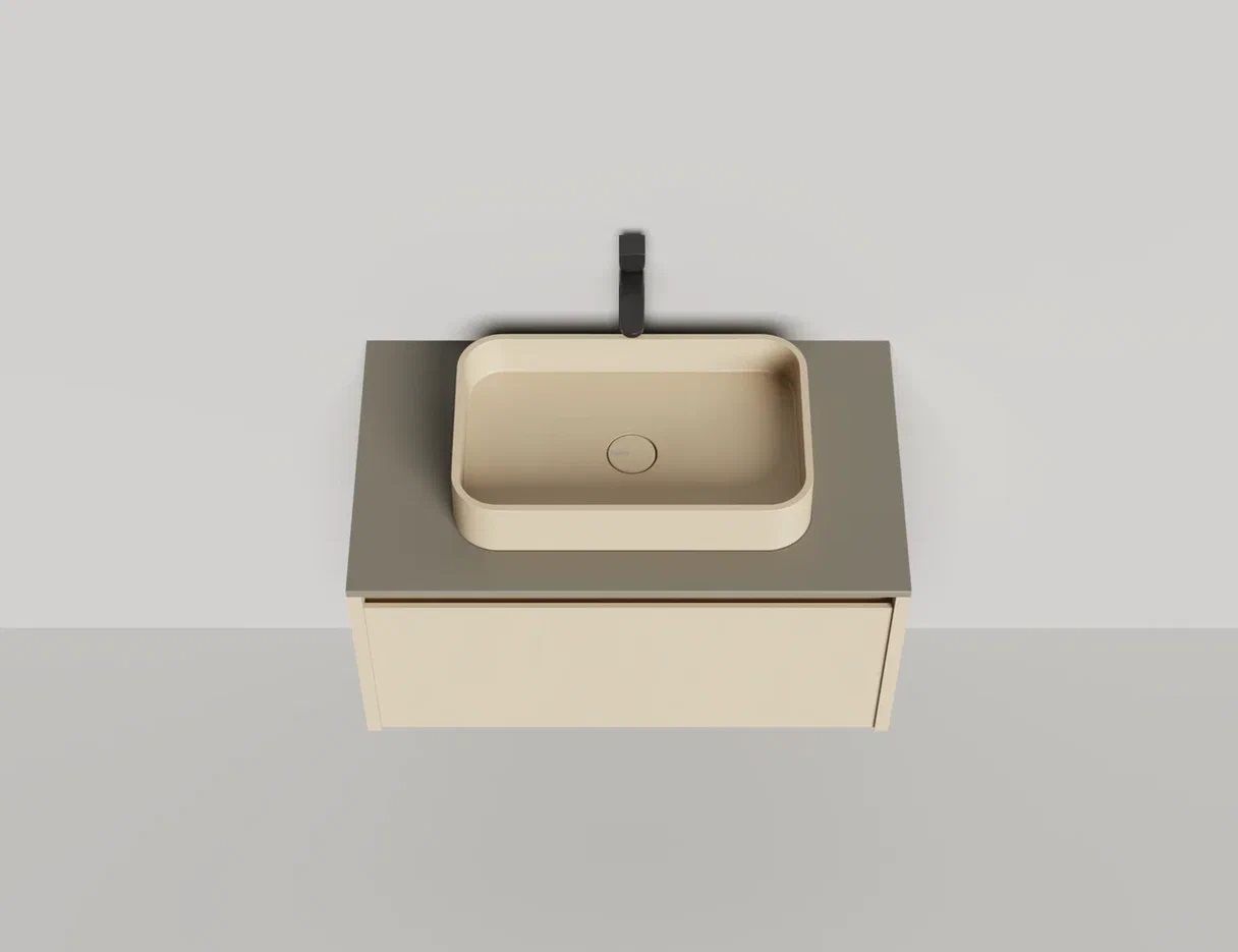 - Тумба и столешница из материала S-Stone в сборе (накладные раковины укомплектованы донным клапаном и поставляются в отдельной коробке)