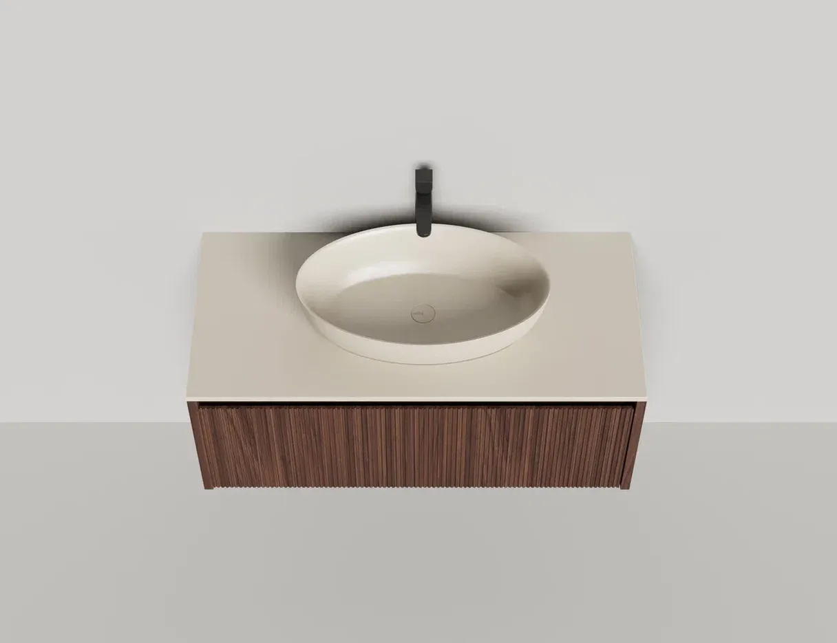 - Тумба и столешница из материала S-Stone в сборе (накладные раковины укомплектованы донным клапаном и поставляются в отдельной коробке)