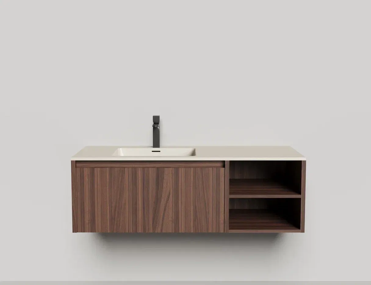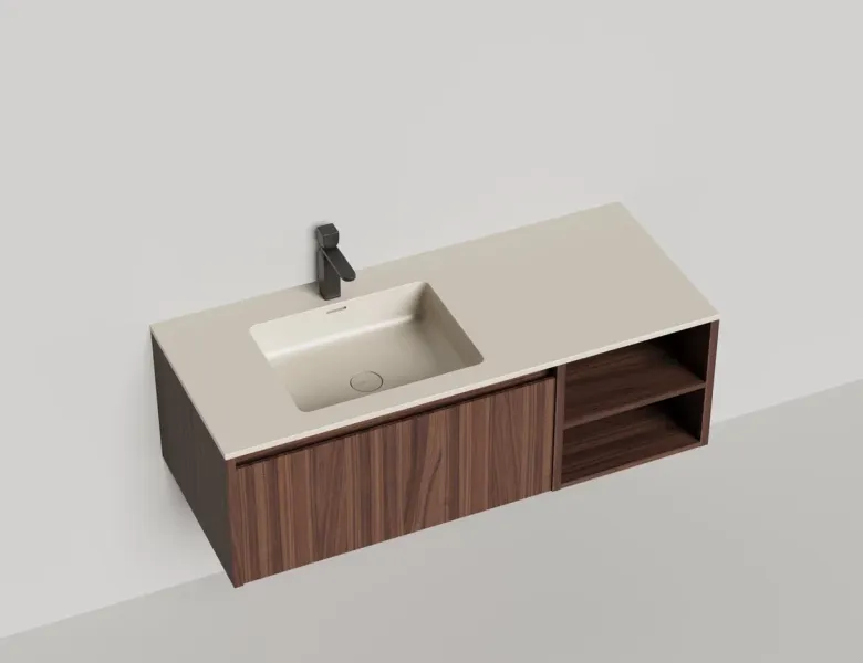 Наполнение для тумбы включает: блоки ячеек для тумб, коврики и комплект внутренней подсветки, которые помогут организовать пространство и создать более удобный доступ к вещам.Тумба DOMINO, дополненная столешницей COSTA из каменного литья S-Stone, гарантирует практичность и простоту ухода.