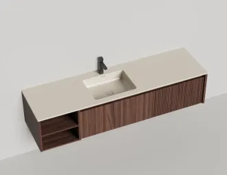 Наполнение для тумбы включает: блоки ячеек для тумб, коврики и комплект внутренней подсветки, которые помогут организовать пространство и создать более удобный доступ к вещам.Тумба DOMINO, дополненная столешницей COSTA из каменного литья S-Stone, гарантирует практичность и простоту ухода.