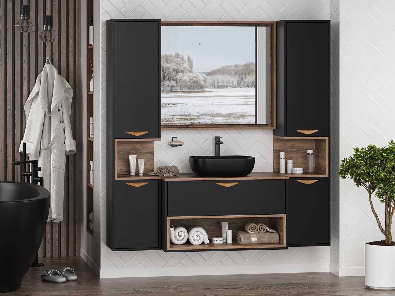 Шкаф-пенал для ванной комнаты – это стильное решение, которое гармонично вписывается в современный интерьер. Его элегантные линии и аккуратные формы создают атмосферу чистоты и порядка, что особенно важно в таком интимном пространстве. Изготовленный из качественных влагостойких материалов, этот шкаф обеспечивает долговечность и надежность, даже в условиях повышенной влажности.Основное преимущество шкаф-пенала заключается в его вместительности. Удобные полки и ящики позволяют организовать пространство и разместить все необходимое: от косметики до бытовых принадлежностей. Каждая деталь продумана для удобства использования, что делает утренние и вечерние ритуалы более приятными.Будь то строгий минимализм или уютный скандинавский стиль, шкаф-пенал станет акцентом, который подчеркивает индивидуальность вашего пространства. Не упустите возможность преобразить свою ванную комнату, добавив в нее этот элегантный и практичный элемент.