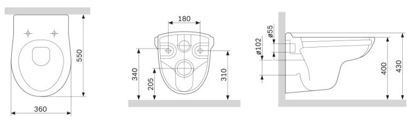 • Прилегание унитаза к стене: