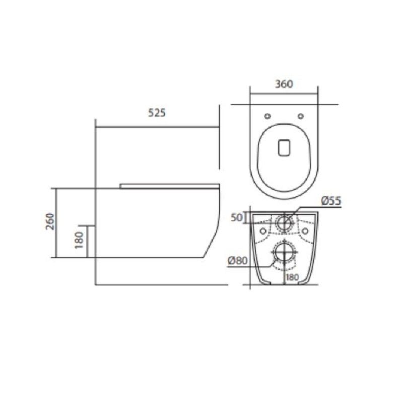 Ширина чаши унитаза 360 мм