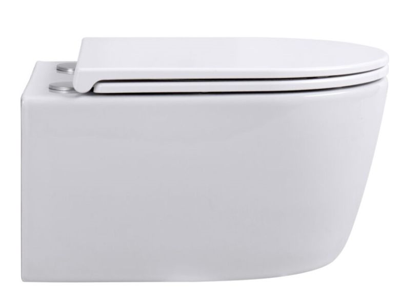 Подвесной безободковый унитаз с системой скрытого монтажа, крышкой-сидением из дюропласта с функцией soft-close и quick release.