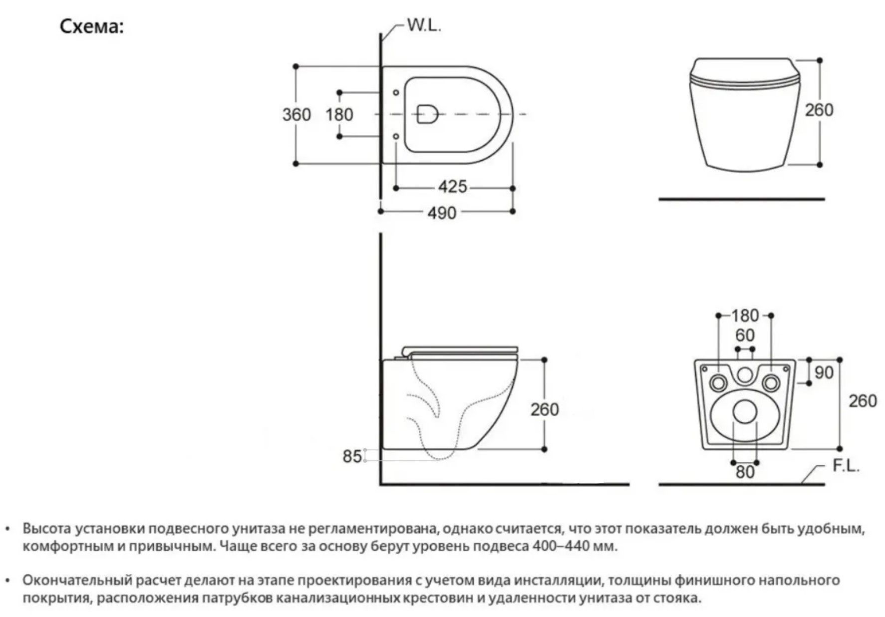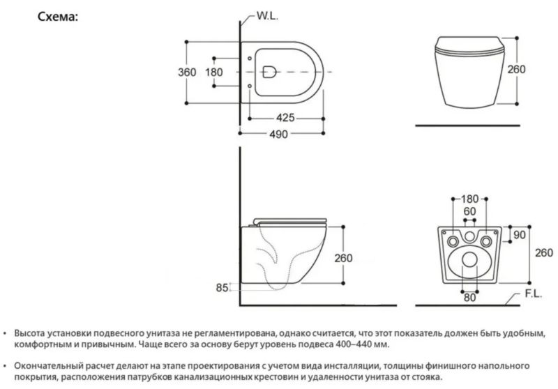 Режим смыва воды:определяется системой инсталляции