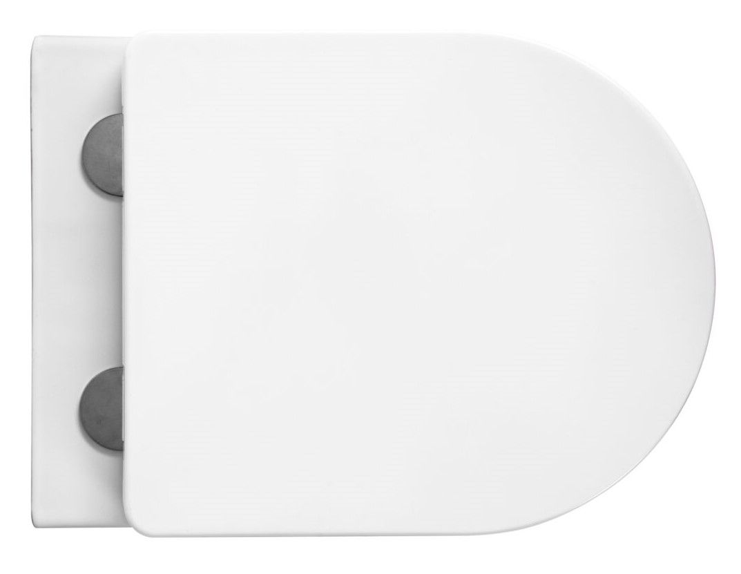 Подвесной безободковый унитаз с системой скрытого монтажа, крышкой-сидением из дюропласта с функцией soft-close и quick release.