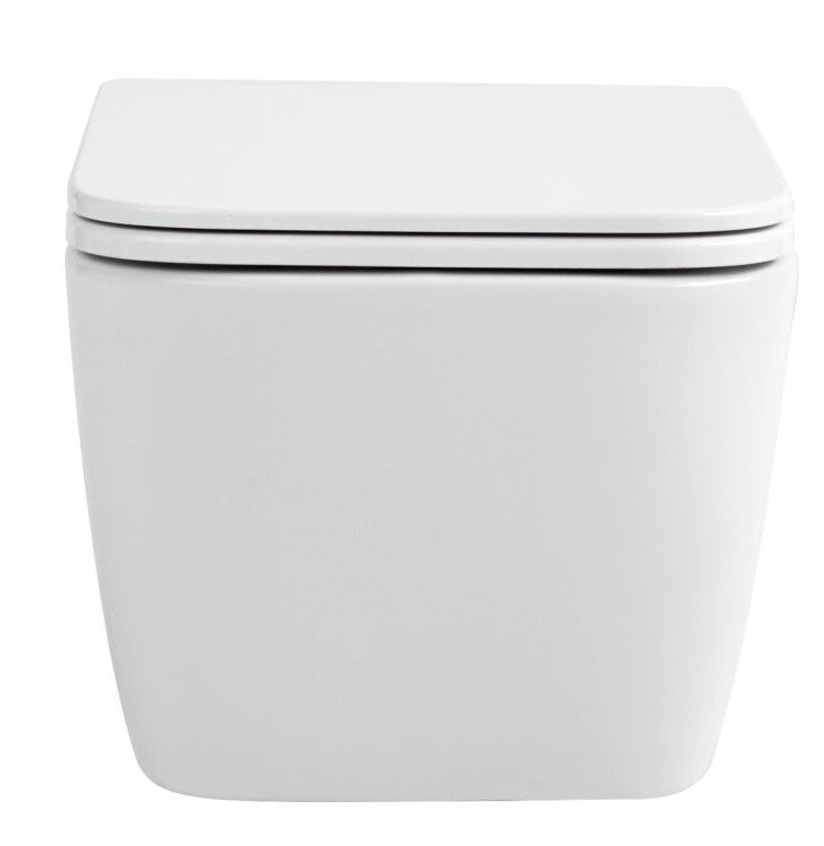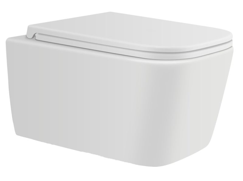 Подвесной безободковый унитаз с системой скрытого монтажа, крышкой-сидением из дюропласта с функцией soft-close и quick release.