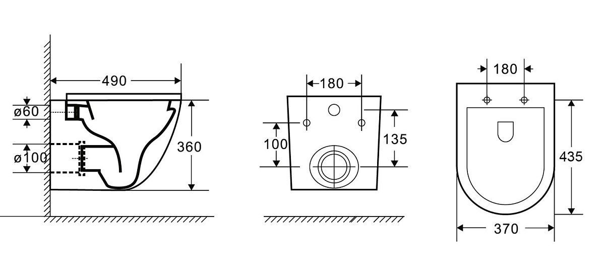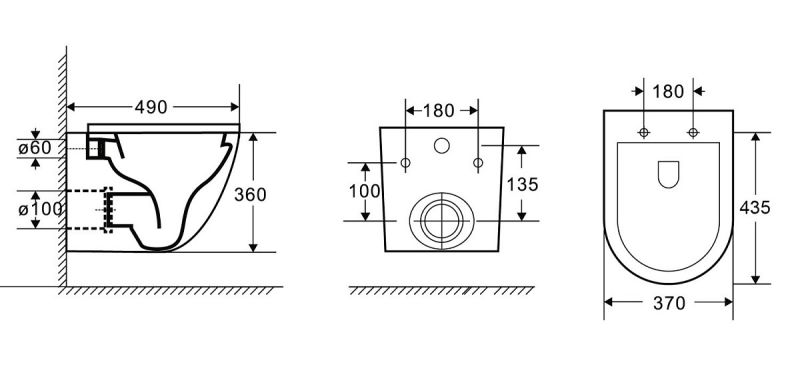 • Прилегание унитаза к стене: