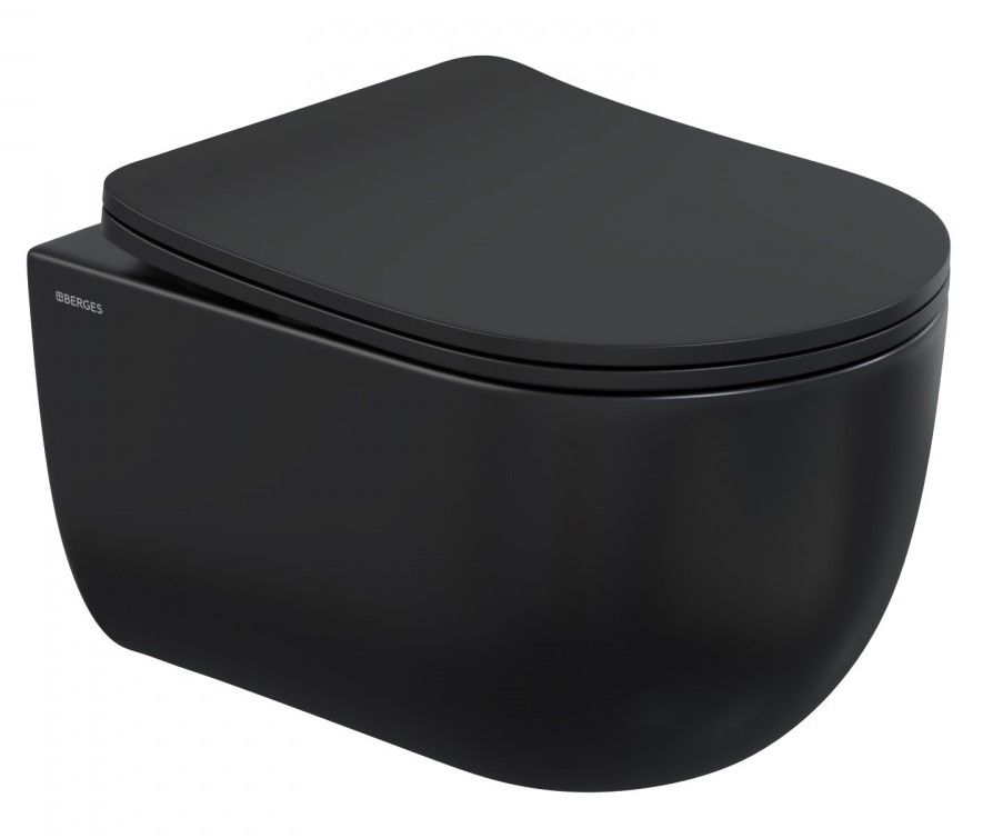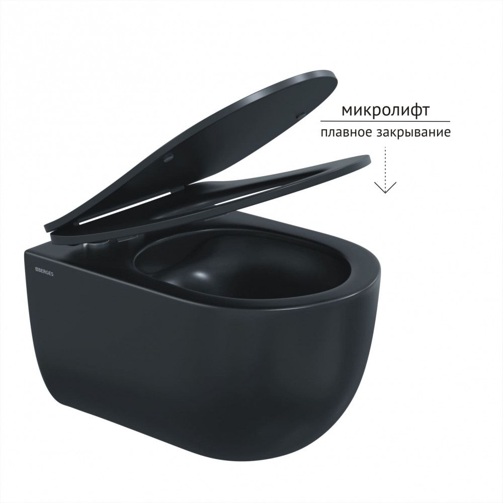 Подвесной унитаз Berges Ventas Black Rimless 082136 сиденье дюропласт Ventas Slim SO чёрный