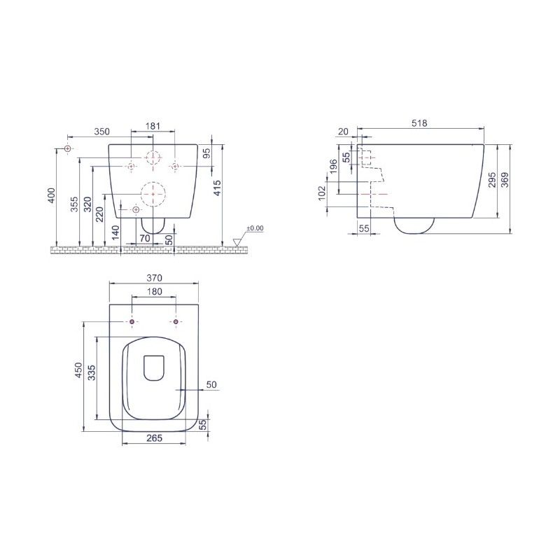Унитаз подвесной Boheme Zen 967-2 с функцией биде великолепно подойдет не только для того что бы освежить былой интерьер, но и подойдет для основы будущего дизайна. Подвесной унитаз колоссально повысит эстетику вашей ванной комнаты, благодаря своей компактности и стилю.Прямоугольная форма унитаза Boheme Zen длиной 51.8 см, шириной 37 см, высотой 36.9 см, позволяет гармонично установить унитаз. Boheme Zen 967-2 выполнен в современном стиле, что позволит создать уютную атмосферу данного направления дизайна. Безободковая конструкция чаши Zen 967-2 не только препятствует появлению бактерий и вредного запаха, но и упростит процесс мытья унитаза. Горизонтальный (в стену) выпуск унитаза Boheme Zen 967-2 обеспечит отличную проходимость, но этот параметр обязательно нужно учесть при монтаже. Материал унитаза 967-2 фарфор отличается высокой гигиеничностью, надежностью и выполнен с соблюдением стандартов качества. Функция биде встроенная в чашу Boheme 967-2, дополняет унитаз полезной функцией, без необходимости установки дополнительного оборудования.Родина марки Boheme – Италия, все унитазы производятся с абсолютным соблюдением стандартов качества. Унитаз подвесной Boheme Zen 967-2 с функцией биде необходимый элемент любого санузла, который составляет основу всей сантехники.