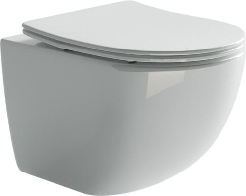 Подвесной унитаз Forma Rimless, глубокий смыв, с крепежом для полностью скрытого монтажа, ультра тонким сидением с функцией плавного закрытия, дюропласт