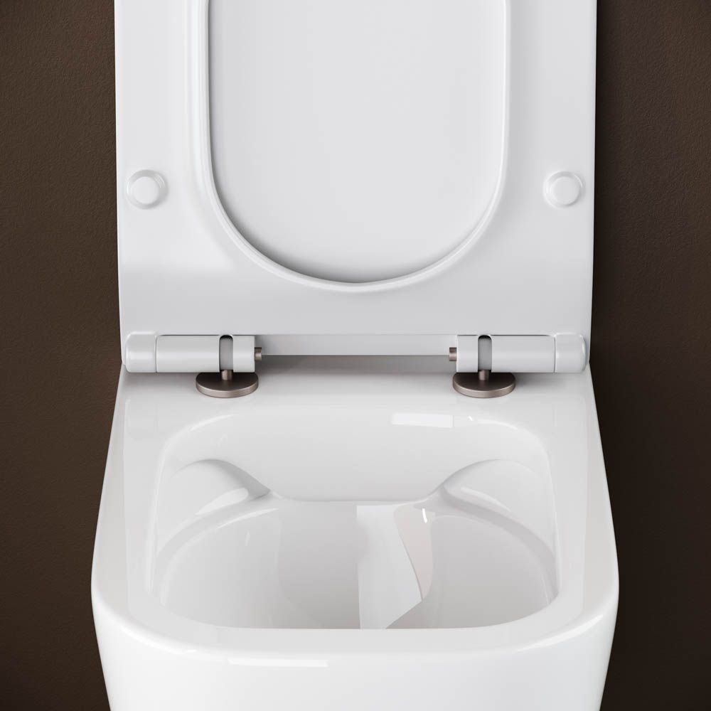 Подвесной унитаз New Day Rimless, глубокий смыв, с крепежом для полностью скрытого монтажа, ультра тонким сидением с функцией плавного закрытия, дюропласт