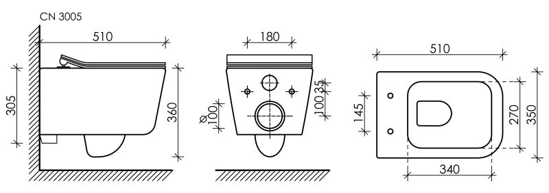 • Прилегание унитаза к стене: