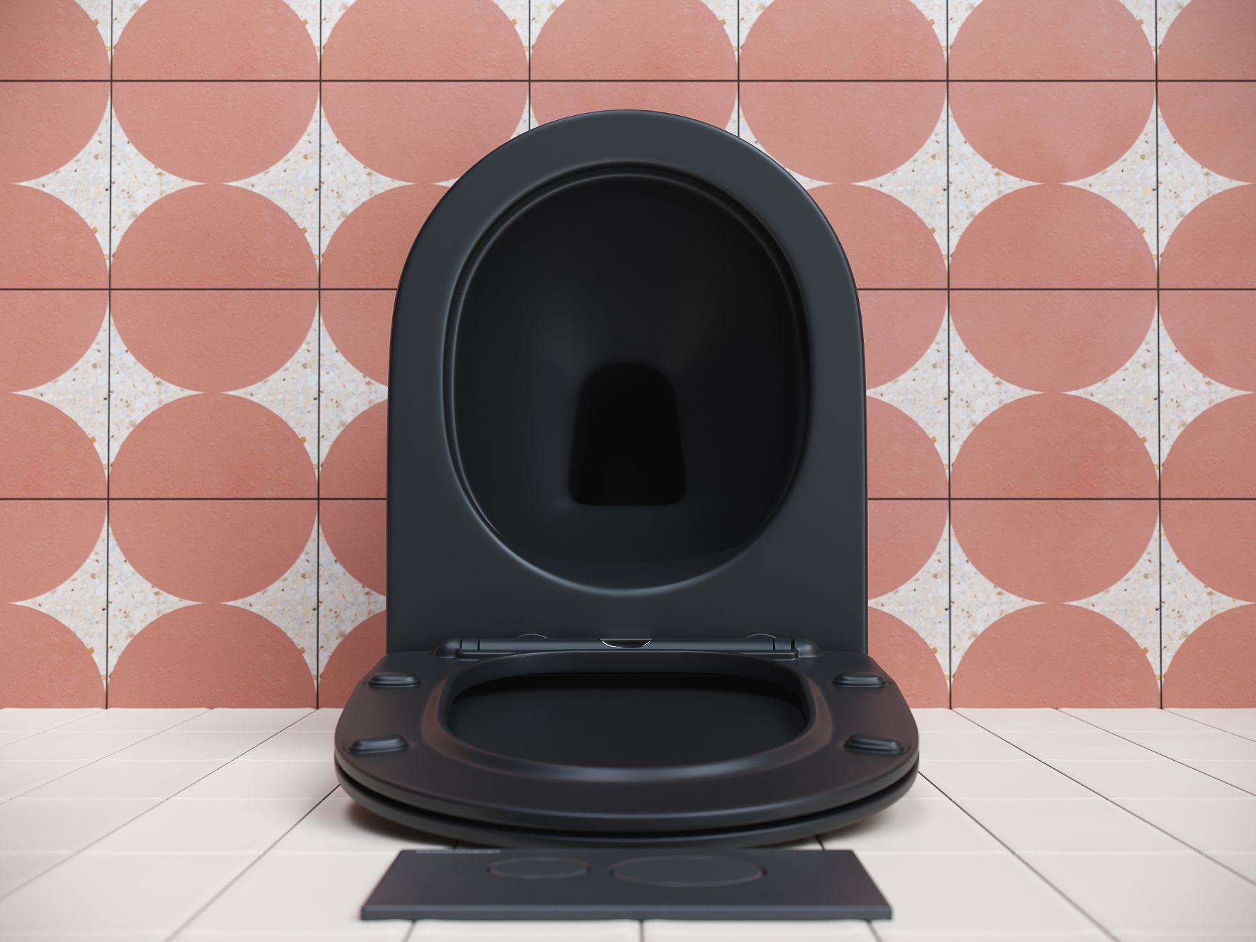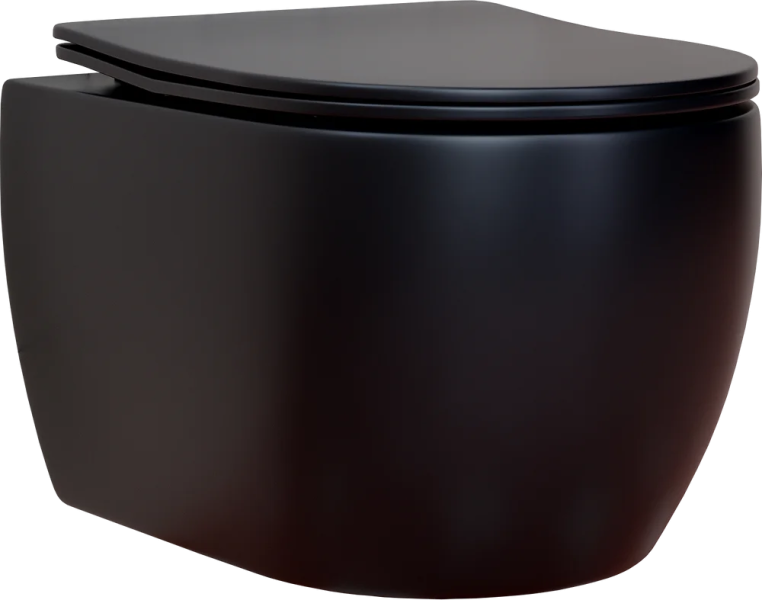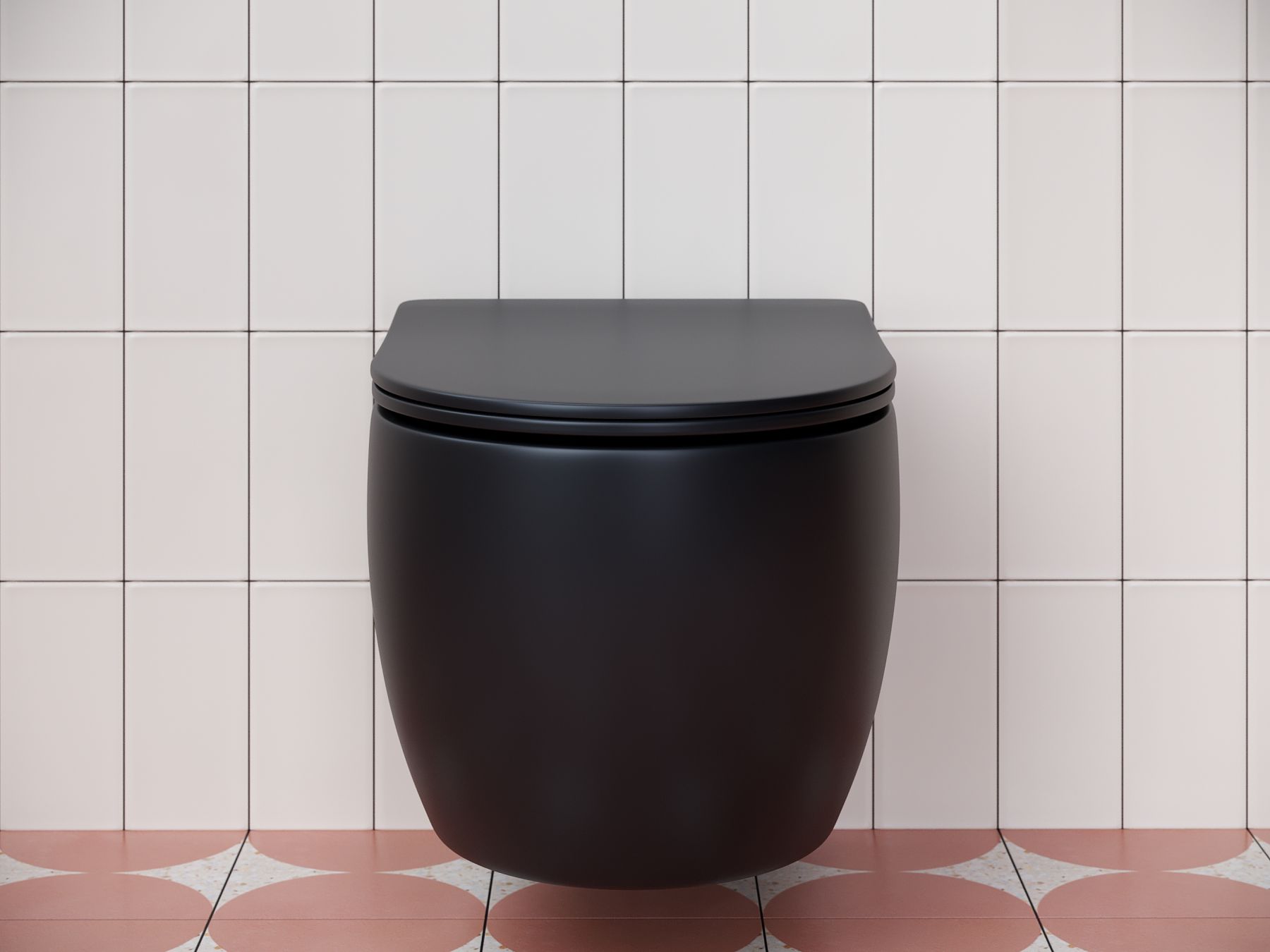 Подвесной унитаз Play Rimless, глубокий смыв, с крепежом для полностью скрытого монтажа, ультра тонким с сидением и крышкой с функцией плавного закрытия, дюропласт, черный матовый