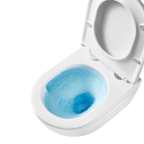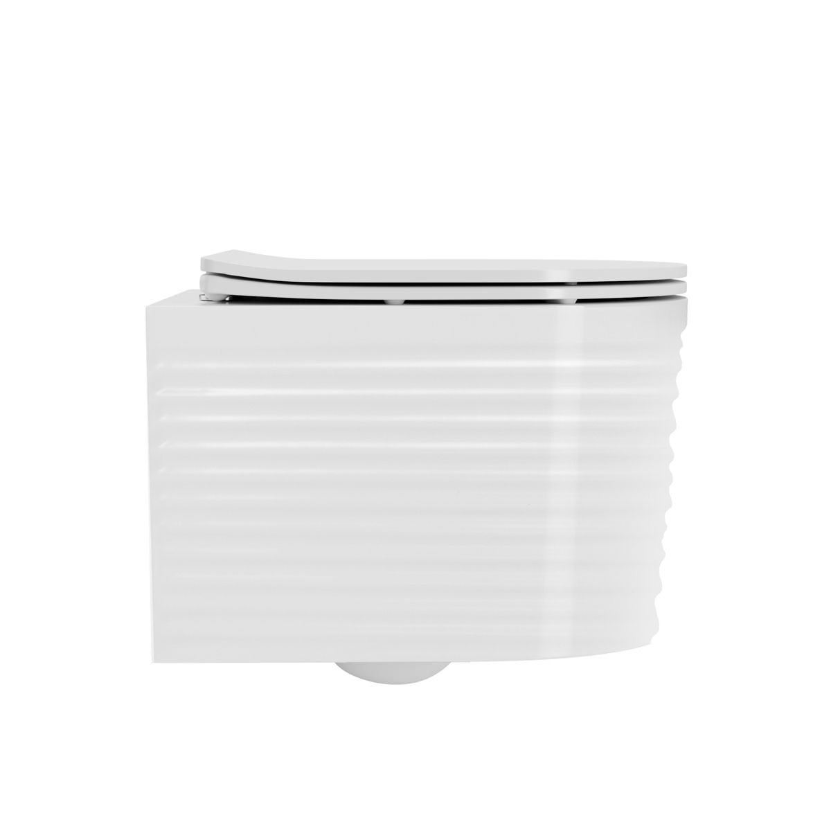 Комплектация унитаз настенный керамический безободковый; сиденье для унитаза из дюропласта ультратонкая легкосъемная с функцией плавного закрывания; инструкция/гарантийный талон