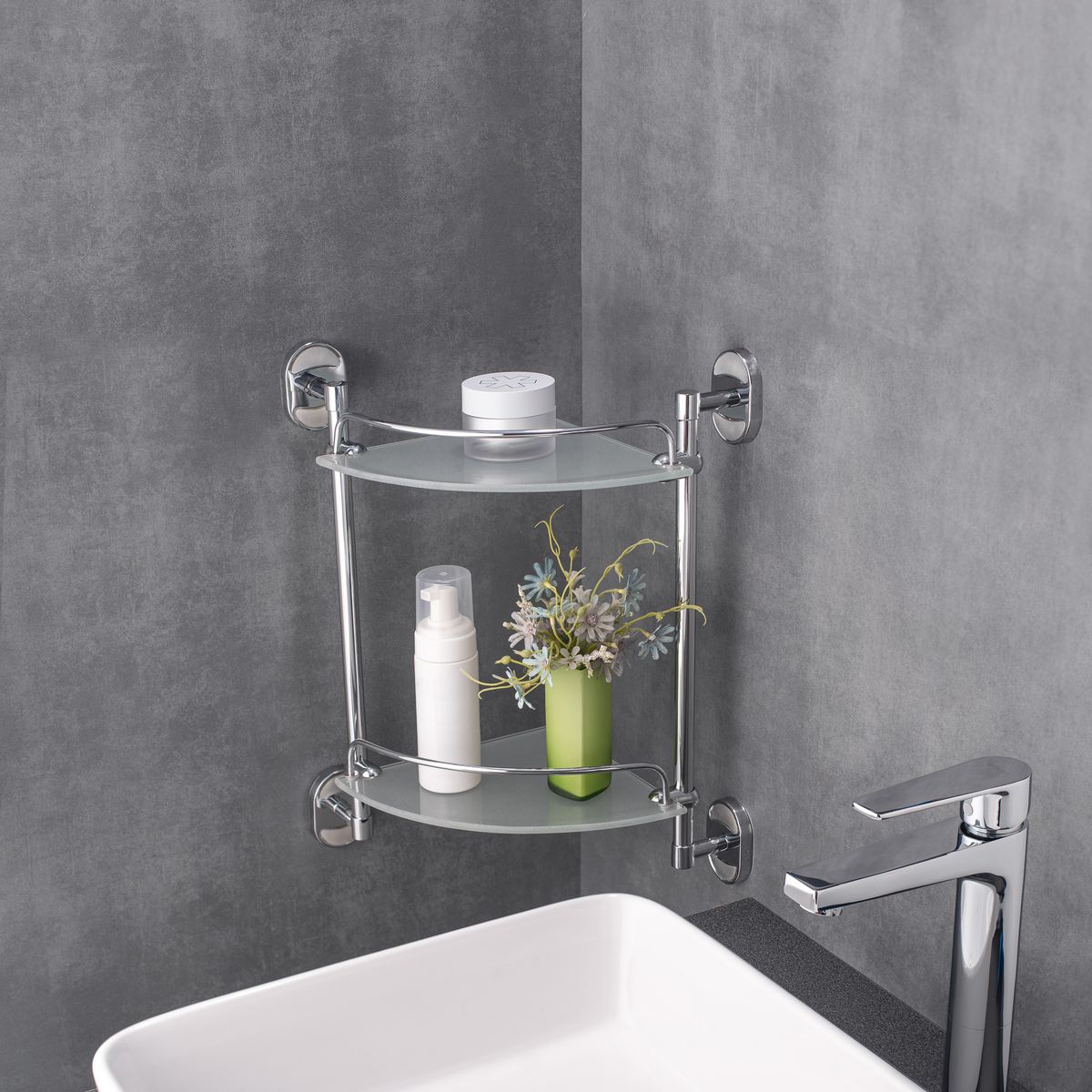Полка для ванной комнаты РМС A9010 двойня угловая хром купить