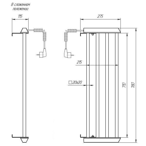 Количество перекладин: 4Коллекция: ПолкаТип: электрическиеЦвет: хромМощность, Вт: 52Ширина (мм): 830Высота (мм): 200Глубина (мм): 115-275Вес: 5Объем: 0.042Тэн/подключение: справаСтрана: РоссияГарантия: 2 года