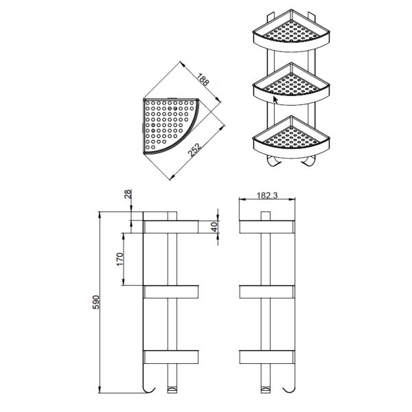 Полка угловая Azario RINA AZ-833-3 трехэтажная, хром матовый