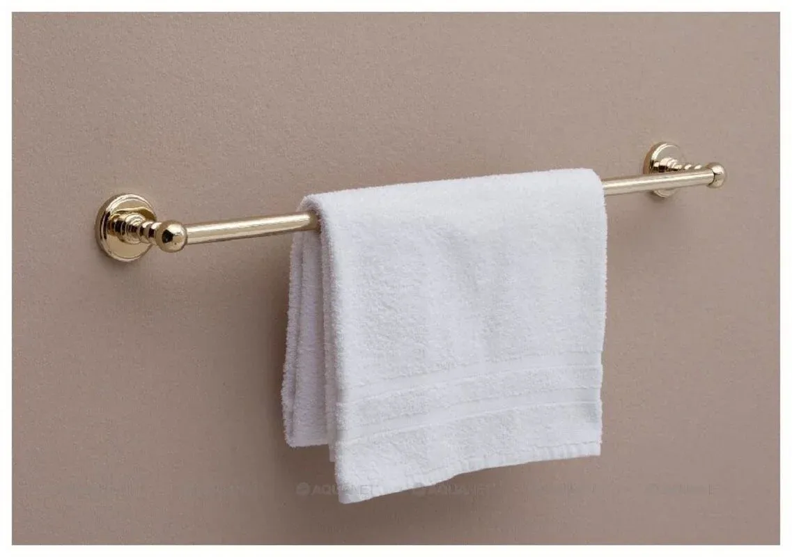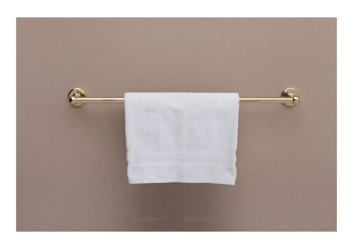 Держатель для полотенец Aquanet 4624 (60 см) - стильный аксессуар в золотой огранке. Ярким элементом в нем является живописная с точеными линиями деталь, которая с одной стороны является держателем для других составляющих модели, с другой – местом, в котором прячутся все крепления аксессуара к стене. Элемент, начинающийся с круглого основания, словно нанизывая на себя детали разных форм, завершается эффектным шаром. В данной модели таких элемента два и они выполняют роль держателя штанги для полотенец длиной 60 см. Аксессуар рассчитан на размещение одного полотенца. Для крепления к стене предусмотрена надежная система, скрытая от глаз в декоративных элементах.