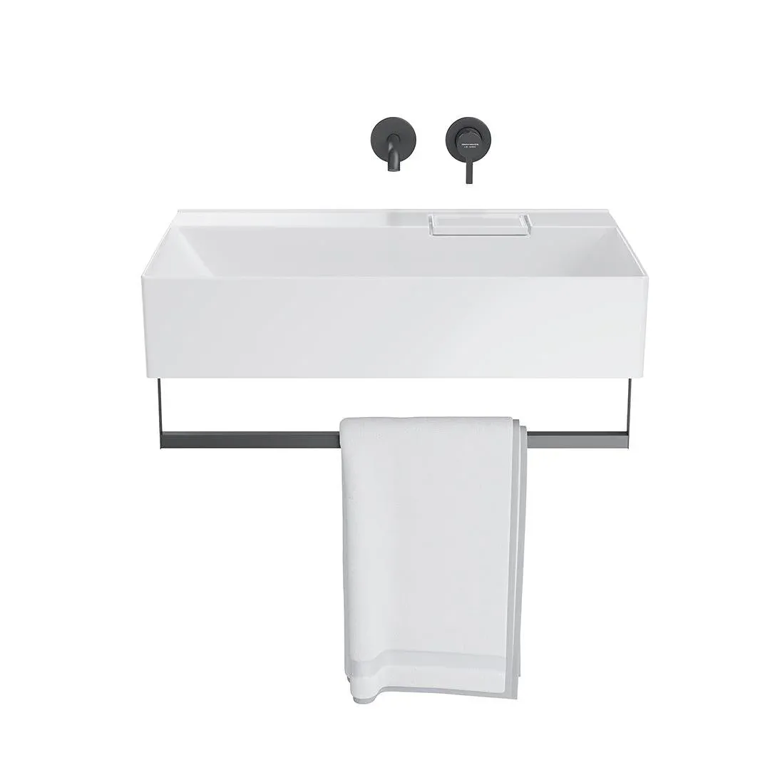 Полотенцедержатель LOGICA 70 подходит для подвесных раковин LOGICA шириной 70 см. Выполнен в черном матовом цвете, конструкция сварная. Крепится винтом снизу раковины в отверстия. В комплектацию входят крепления, гарантийный талон, инструкция по установке держателя.