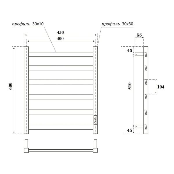 Полотенцесушитель электрический APEXTERMO Galaxy GL00164BM 600x400 черный матовый