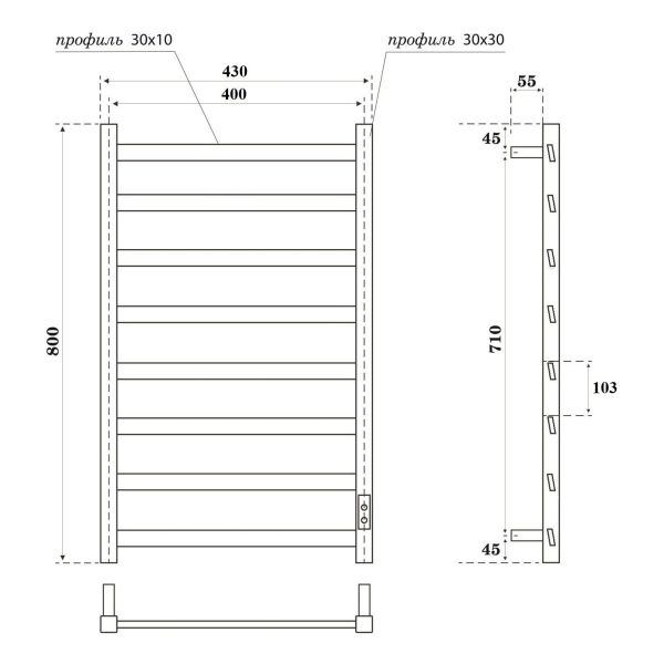 Полотенцесушитель электрический APEXTERMO Galaxy GL00184BM 800x400, черный матовый Подробнее