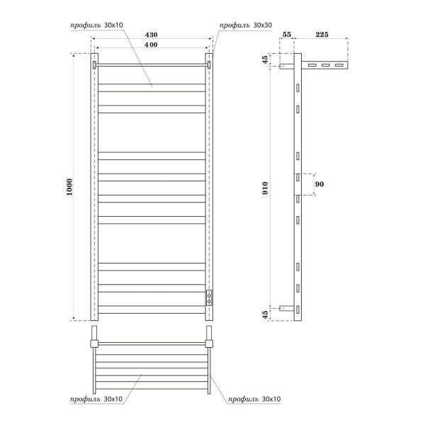 Полотенцесушитель электрический APEXTERMO Terra TR01104BM 1000x400 с полкой черный матовый Подробнее