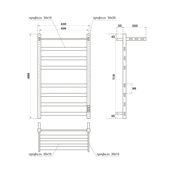 Полотенцесушитель электрический APEXTERMO Terra TR01184BM 800x400 с полкой черный матовый