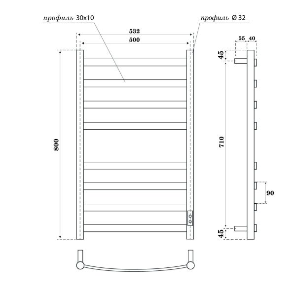 Полотенцесушитель электрический APEXTERMO Umbra UM00185BM 800x500 черный матовый Подробнее
