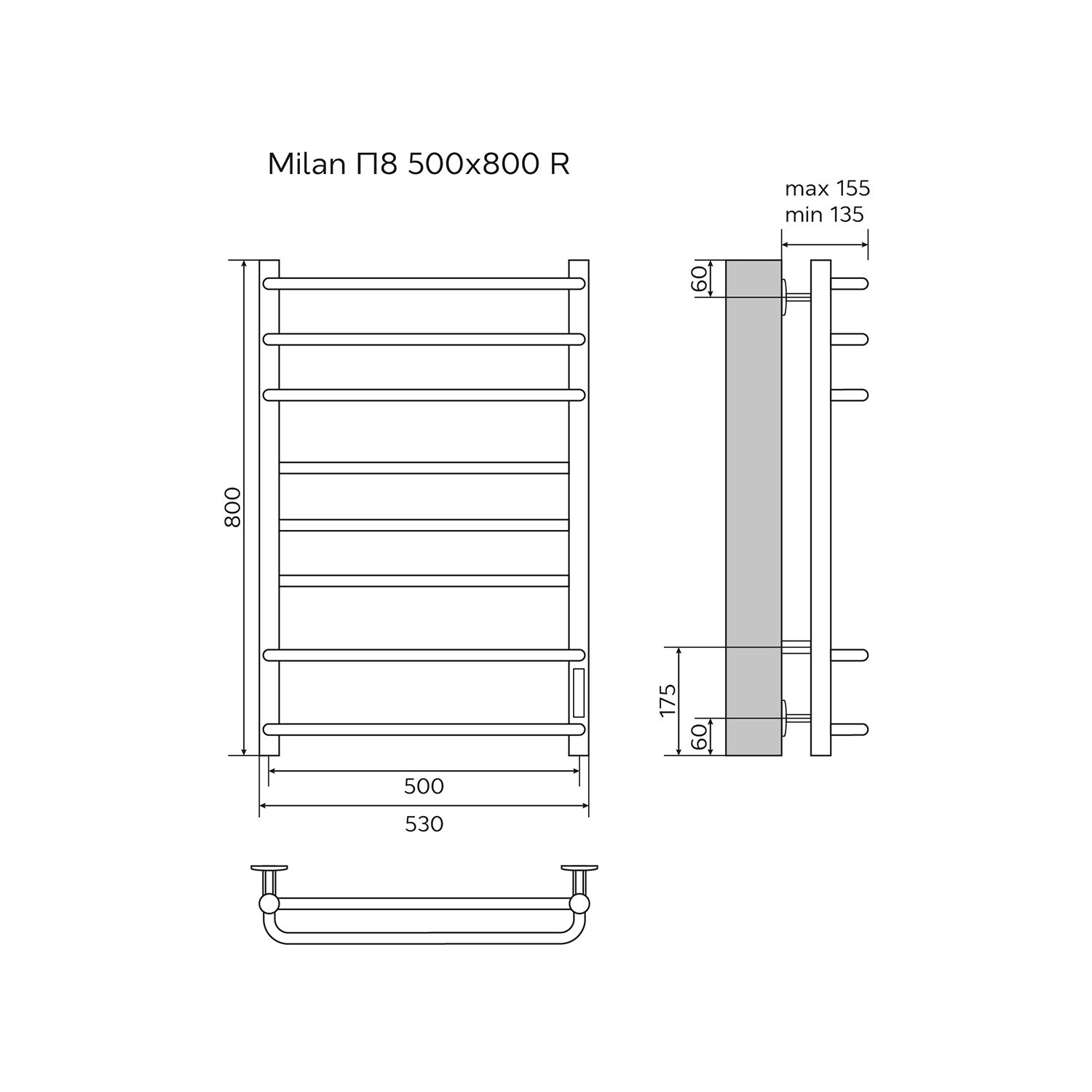 Полотенцесушитель электрический AZARIO MILAN AZ90858W 500/800 8 секций, тен справа, белый купить