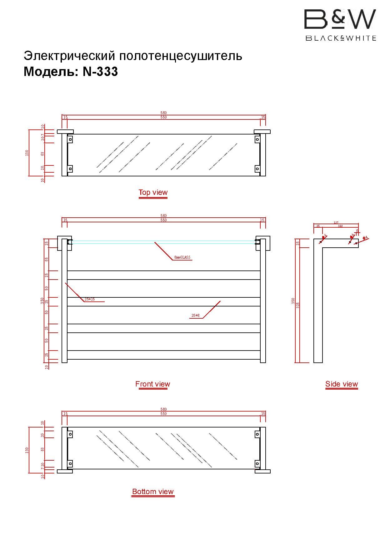 Полотенцесушитель электрический Black & White Moon 333BNКреативность и элегантность Black & White не обошла и электрические полотенцесушители. Вам нужно быстро просушить вещи? B&W позаботиться об этом, пока Вы будете заняты другими делами.Модель, которая идеально выполнит свои функции и сэкономит пространство в Вашей ванной комнате. Строгие линии и закаленное стекло цвета «дыма от костра» окунет Вас в воспоминания вечерних летних вечеров.А благодаря нагревательному элементу нового поколения из карбона Вы можете быть абсолютно уверены в безопасности изделия.