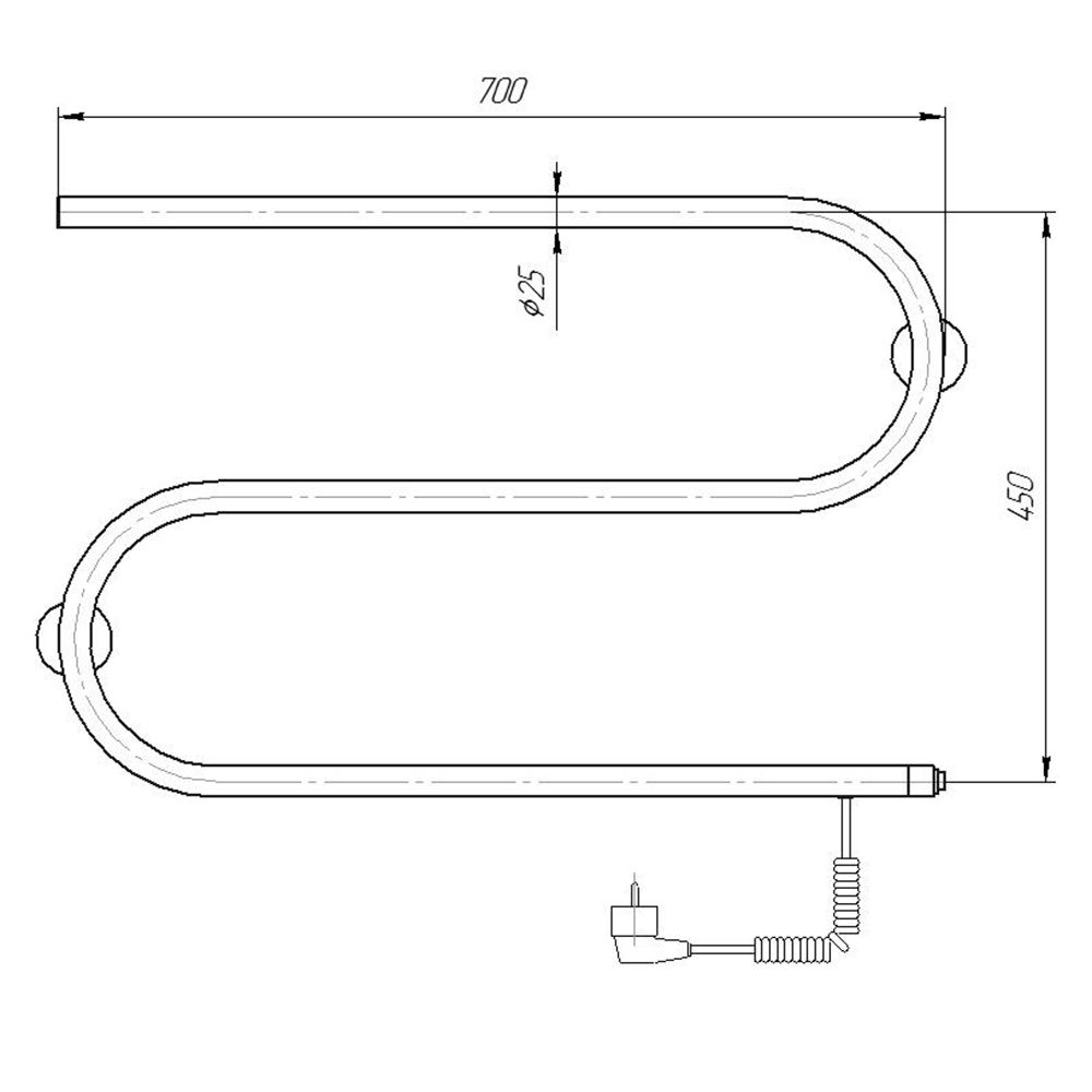 Электрический полотенцесушитель S-образный из нержавеющей стали.