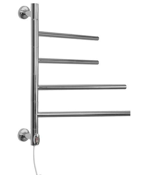 Электрический полотенцесушитель из нержавеющей стали с поворотным механизмом перекладин. Разворачивается на 180 градусов.