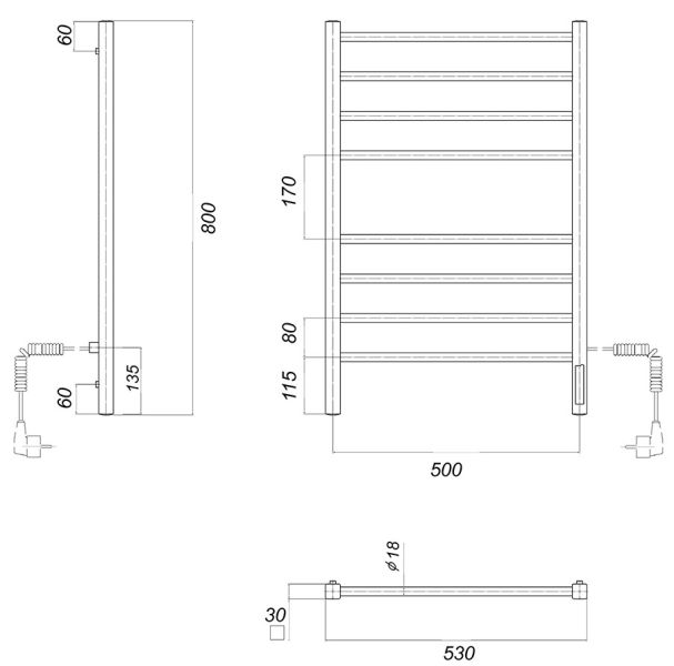 М/о расстояние (межосевое расстояние): 500Количество перекладин: 8Коллекция: КубаТип: электрическиеЦвет: белыйМощность, Вт: 110Ширина (мм): 532Высота (мм): 800Глубина (мм): 80-90Вес: 5,4Объем: 0,04Тэн/подключение: справаСтрана: РоссияГарантия: 2 года