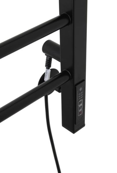 Электрический полотенцесушитель тэном представляет собой современный обогревательный электроприбор из конструкционной стали черном в цвете.Есть возможность скрытого подключения.Устройство потребляет небольшое количество электроэнергии и может работать на протяжении длительного периода времени без отключения от сети; является дополнительным источником отопления в комнате, можно использовать в ванных комнатах для сушки белья, полотенец.