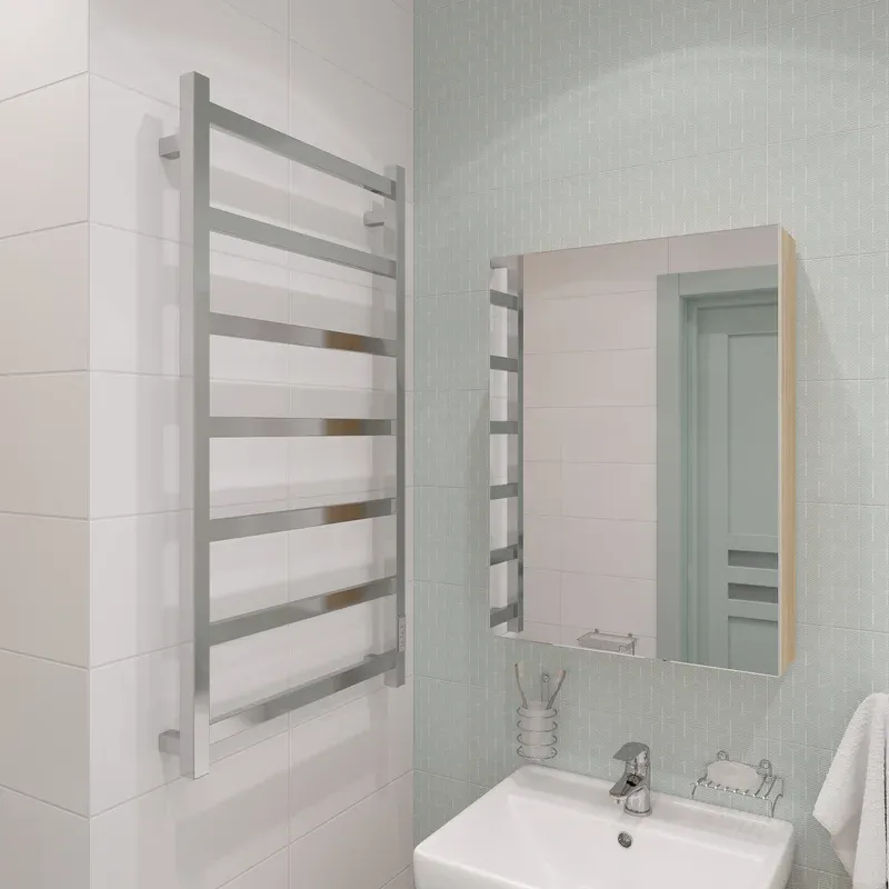 Для ванных комнат площадью до 4 м², где важно сохранить лаконичный дизайн и избежать сложного монтажа. Хромированная поверхность harmoniously сочетается с современной сантехникой и мебелью.