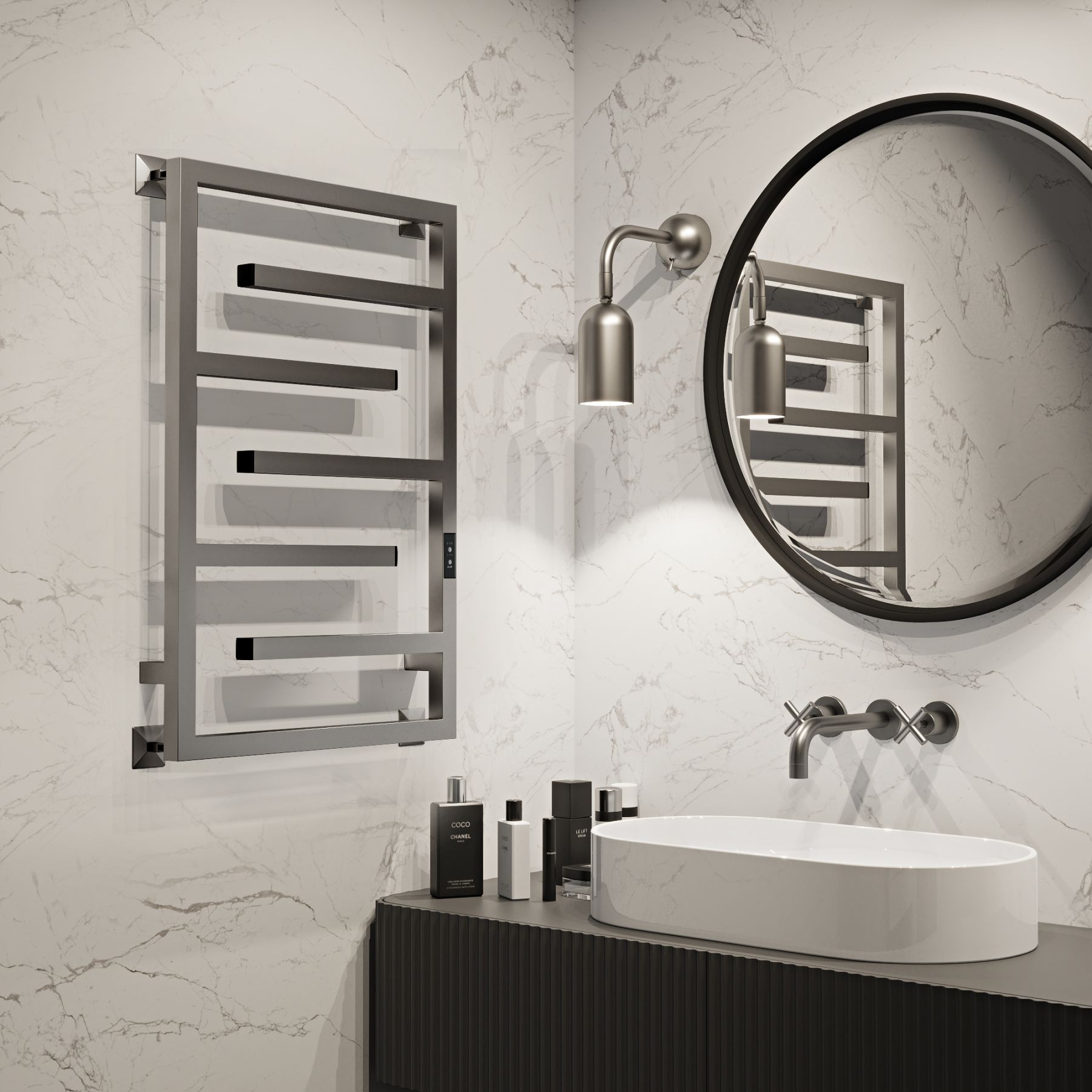 Полотенцесушитель электрический Indigo Delos DGD80-50GNSRt 80x50 см оружейная сталь купить