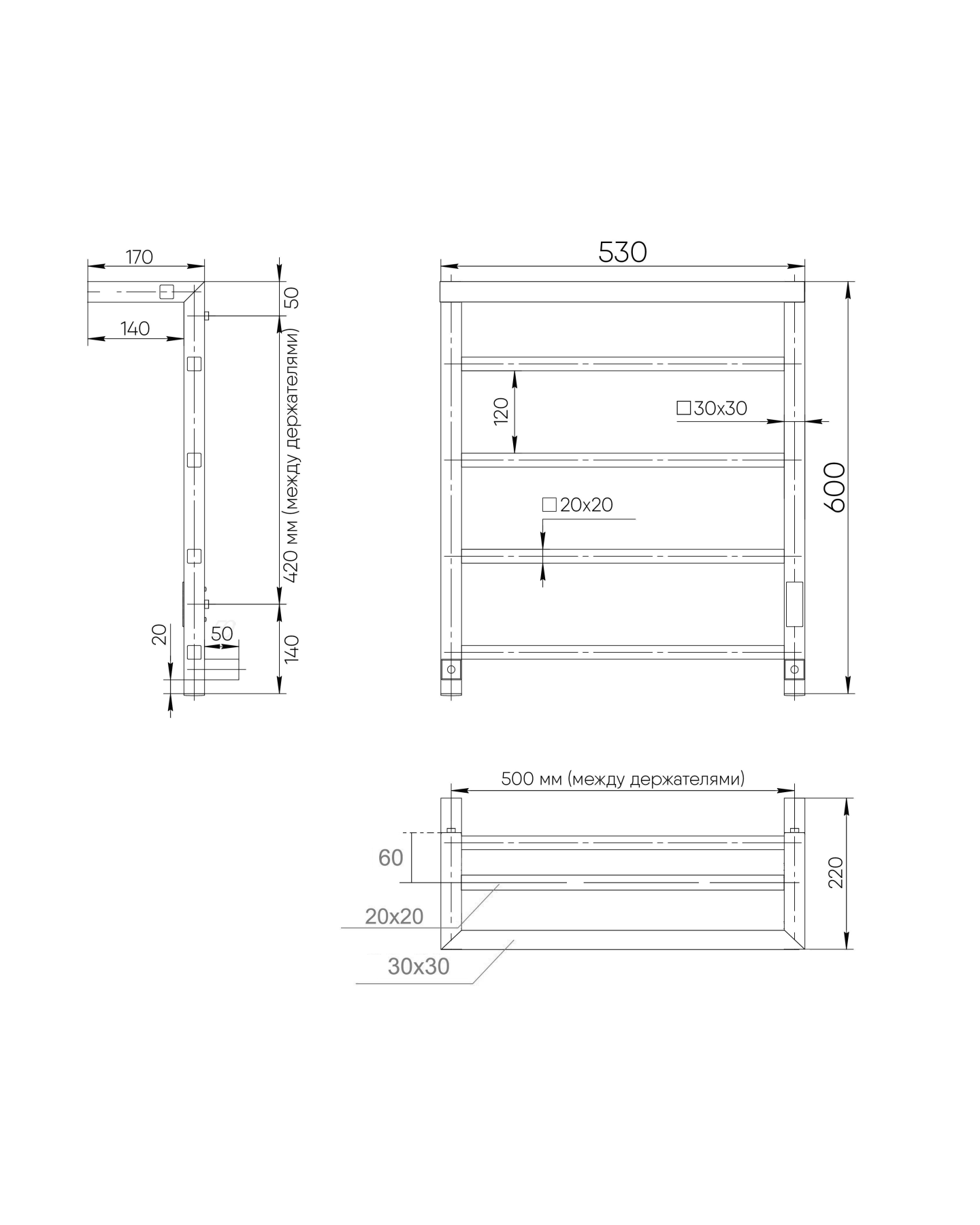 В комплектации идут 4 телескопических держателя, комплект монтажа и гарантийный паспорт на 3 года.