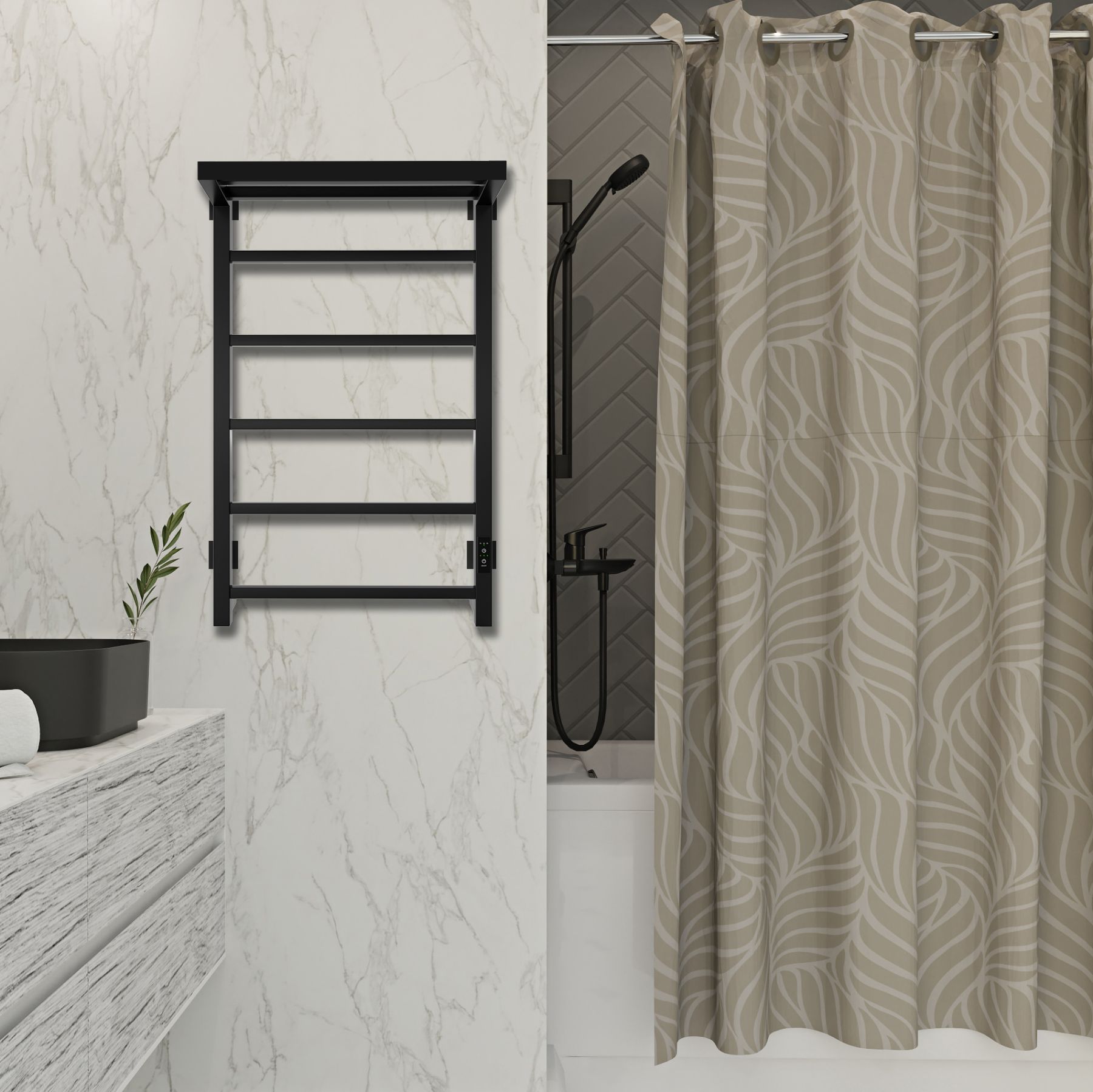 Полотенцесушитель электрический Indigo Forma LEF80-50BRRt с полкой 80x50 см чёрный муар