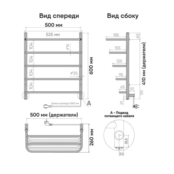 Полотенцесушитель электрический INDIGO Hit с удобными перекладинами для сушки текстильных изделий. Модель оснащена кнопкой включения на нижней части стойки. Универсальность изделия предусматривает подключение через прямой провод, который переставляется на нужную вам сторону или скрытое подключение без покупки дополнительного переходника. Длина прямого провода 1,1 метра.