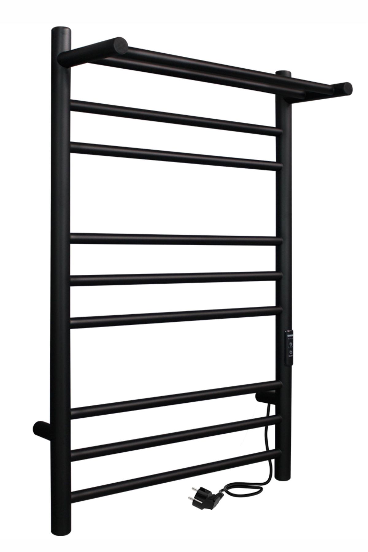 Полотенцесушитель электрический INDIGO Trinity в цвете «Черный Муар» для эстетичного дополнения вашей ванной комнаты в стиле loft или темных тонах.