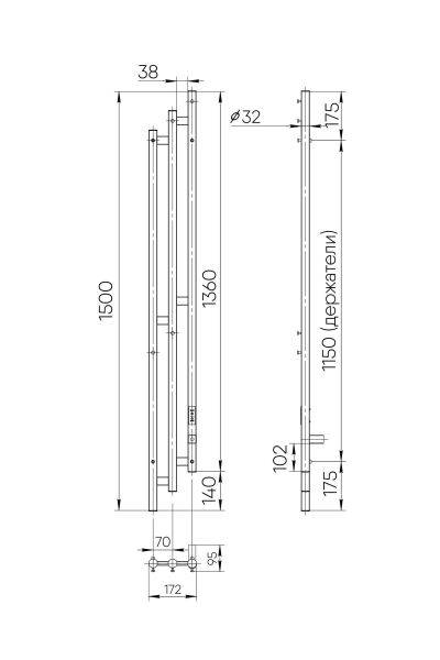 Электрический полотенцесушитель INDIGO Sky в цвете «Черный Муар». Уникальный дизайн, состоящий из трех круглых вертикальных стоек диаметром 32 мм, асимметрично соединенных прямоугольными перекладинами, придаст вашей ванной комнате современный вид.  Полотенцесушитель черный матовый покрыт безопасным порошковым полимером, что делает его устойчивым к повреждениям и облегчает уход за ним.