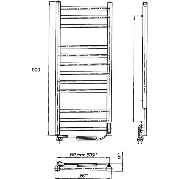 Полотенцесушитель электрический Laris Астор ЧК12 350х900 L 73207669 Белый муарХарактеристики:Цвет: белый муар.