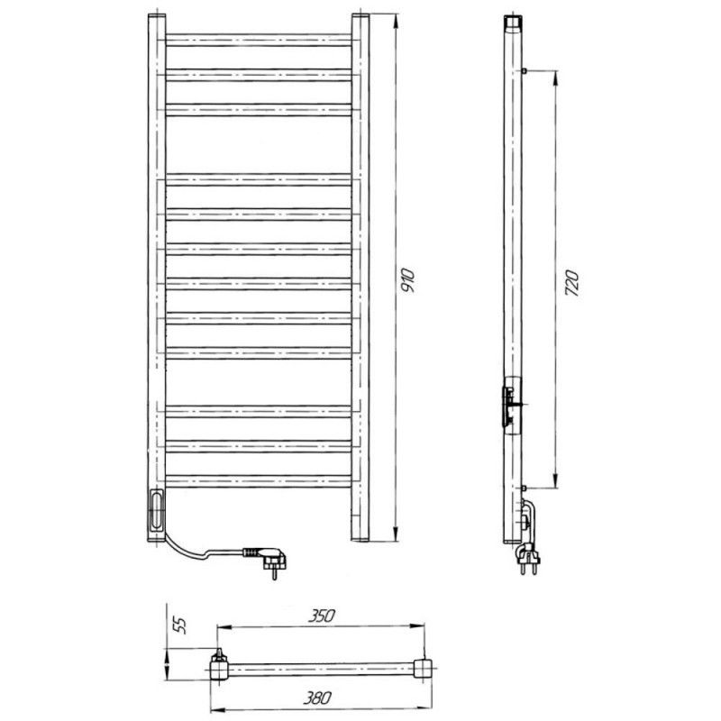 Полотенцесушитель электрический Laris Астор ЧК12 350х900 L 73207669 Белый муар