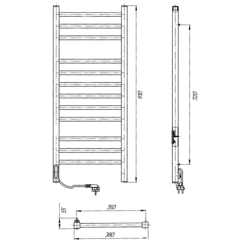 Полотенцесушитель электрический Laris Астор ЧКЧ12 350х900 L 73207664 Черный муар